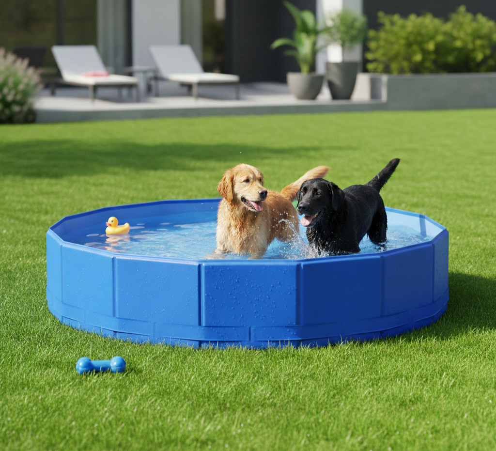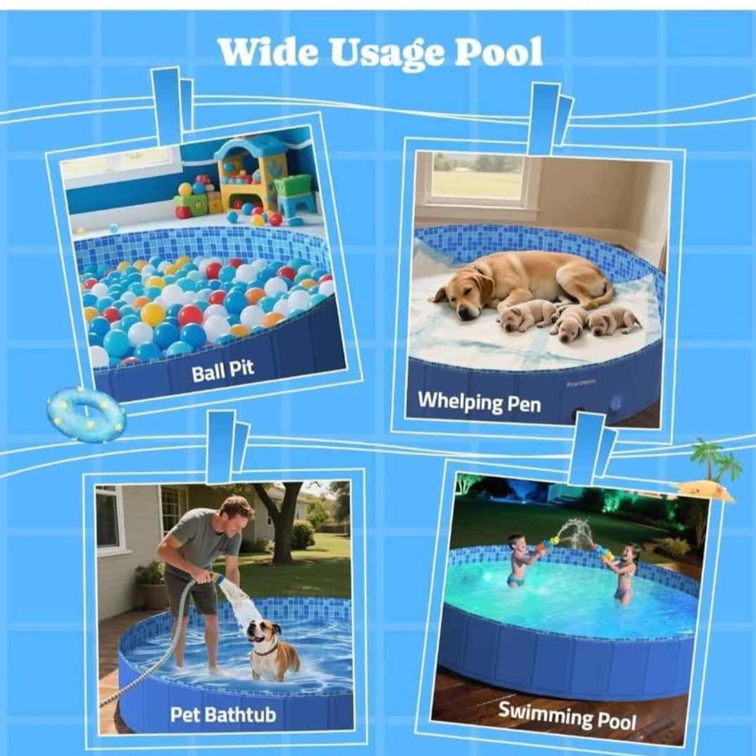 Foldable Dog Pool, 79" X 11.8" Collapsible Hard Plastic Kiddie Swimming, for Small Medium Large Doggie Kitty Puppy, Pet Bathing Tub Wading Pool for Dogs Blue