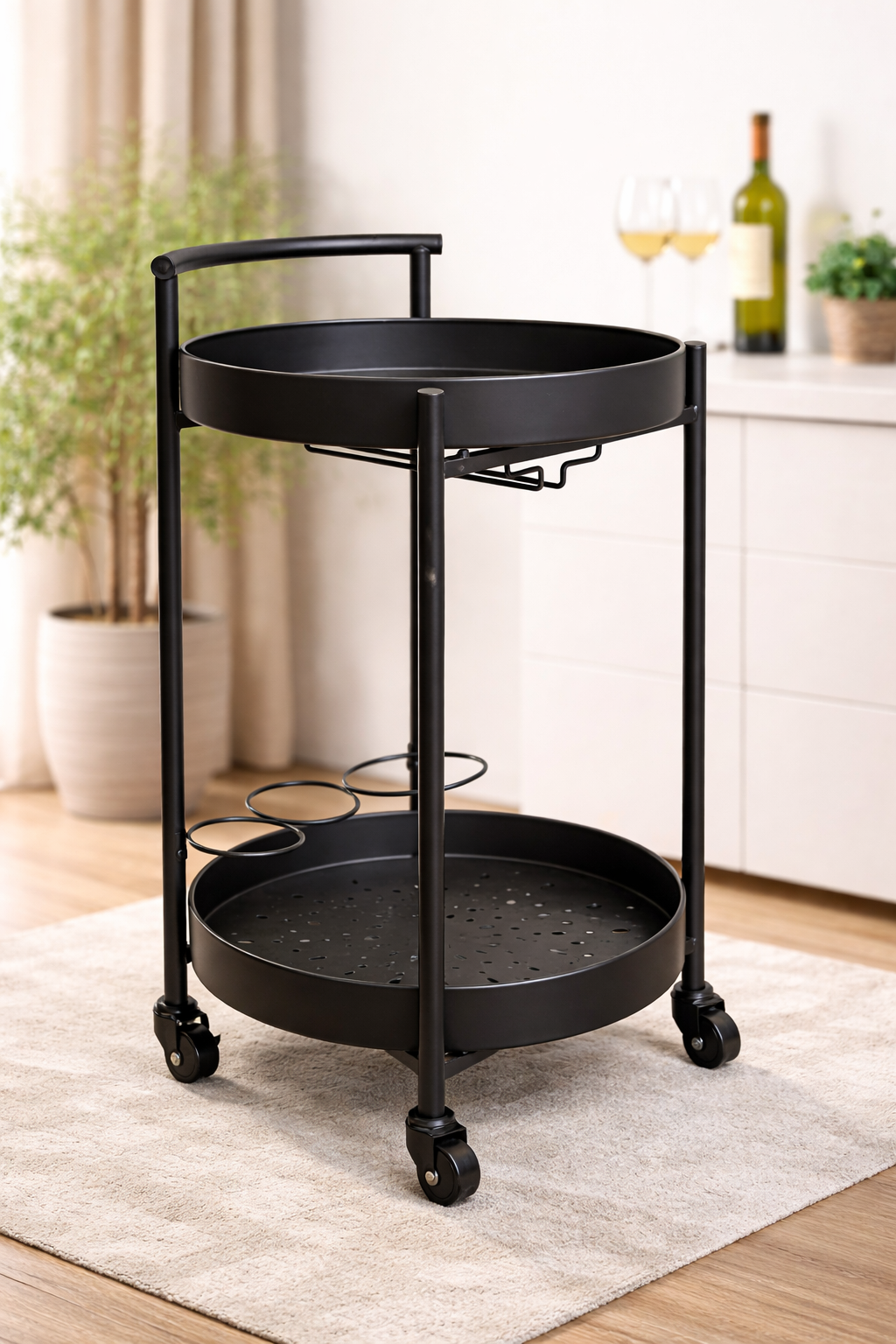 The handle and wheels make it easy to move.